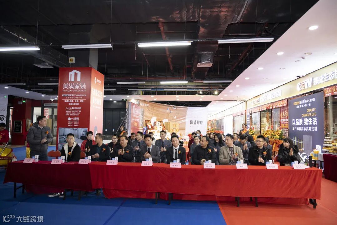 美满家装有限公司董事长陈小龙先生、美满家装有限公司总经理陈活铭先生、简爱家居股份有限公司副总裁钟立维先生、广东永航企业股份有限公司何有彬先生、山市东鹏整装卫浴有限公司华南大区经理曾衍波先生、佛山市索菲卡家居有限公司招商总监杨文先生、惠州市景丽农场董事长叶兆雄先生、深圳宏基泰有限公司董事长徐志文先生、深圳市欧德利酒业有限公司董事长洪志鹏先生、深圳市成兴印刷有限公司董事长陈博先生共同参与美满家装开业典礼剪彩仪式。