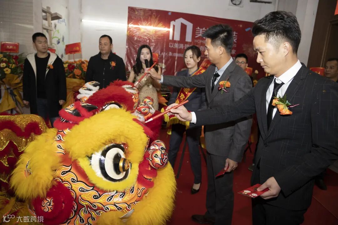 醒狮向来被人们比喻为吉祥的象征,从古至今只要有喜事定少不了醒狮助阵。美满家装董事长陈小龙先生、总经理陈活铭先生上台为醒狮进行点睛仪式和采青仪式。醒狮欢腾,蒸蒸日上,美满家装简爱家居河源店在未来发展中,定能事业大成就、大展宏图!