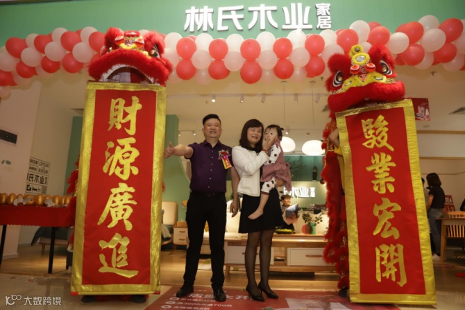 林氏木业大区域经理丁力先生和林氏木业南区店总经理蔡浩先生共同参与醒狮点睛仪式,宣布林氏木业简爱家居南区店正式开业,同时也预示着林氏木业又进入了一个快速发展的新阶段。