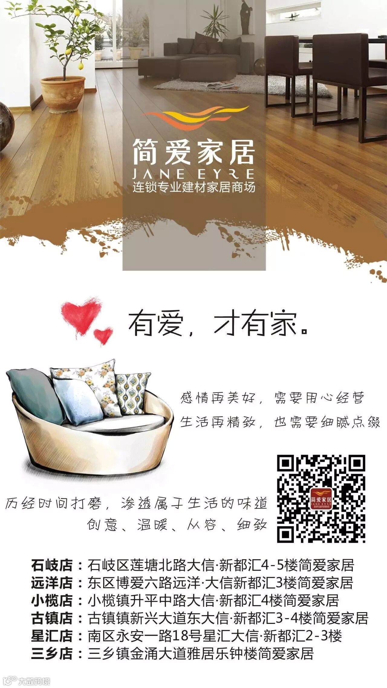 简爱美·生活馆秉承简爱血统,坚持好设计、好品质、好价格、好服务、好环境的经营方针,营造精致居室生活环境,通过全球大规模集采优质产品,打造极具竞争力的快时尚家居用品专营店商业模式!