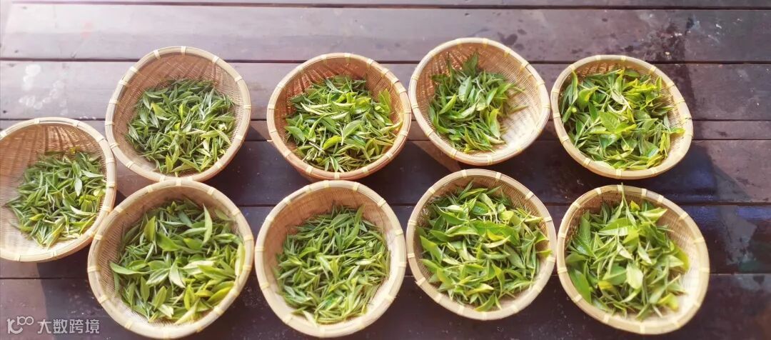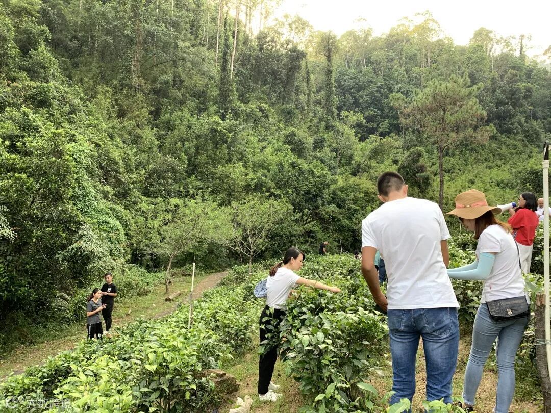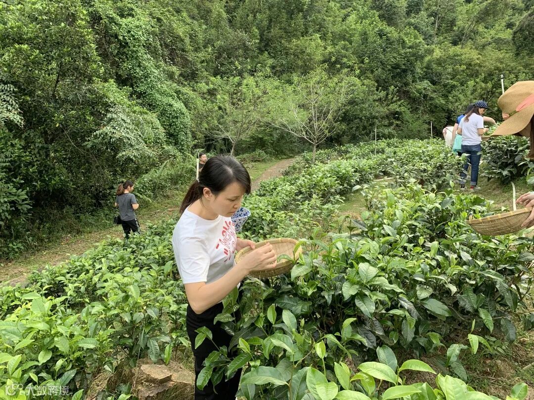 ▼各伙伴化身茶农,采摘着翠绿的茶青。