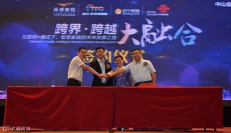 (左起)中国联通、苏宁易购、简爱家居、富元集团战略联盟签约仪式