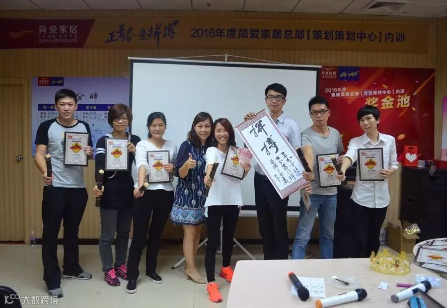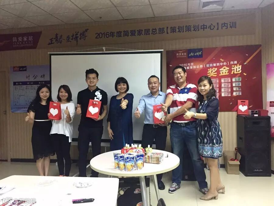2016年11月14日—15日,简爱家居总部【营销策划中心】对全集团门店策划人员开展了为期两天一夜的内部培训课程,各区店总、总监、策划经理、主管及全体策划人员期间以同学相称,大家纷纷怀着空杯心态,以海绵精神全情投入,求知若渴,课程中积极互动交流,为团队、为个人赢得了荣誉和奖金 !学习中开拓了思路,团建中凝聚了团队,这支朝气蓬勃的年轻队伍散发出满满的青春正能量!
