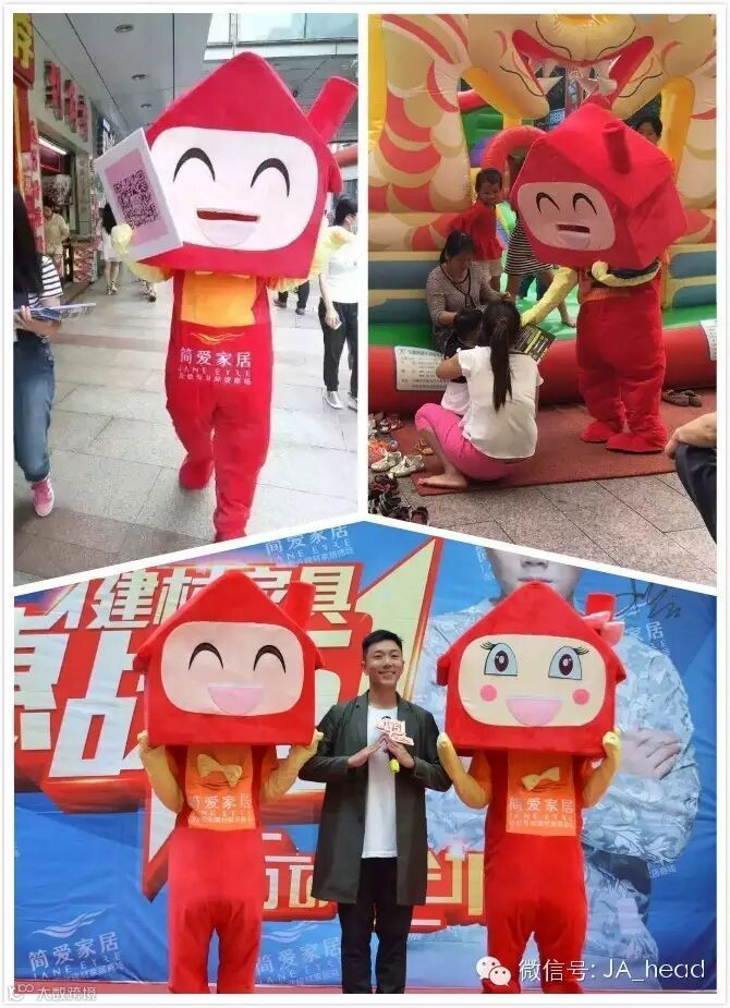 在明星霸屏的同时,简爱的卡通形象小简(男生)、小爱(女生)则以简爱家居绝对大明星姿态霸路商场内外、舞台上下,抢占了大家的视线。首次亮相的小简、小爱为简爱家居的卡通形象代言人,独特的房子造型头部设计将简爱“有家有爱”的概念更加拟人化传递给大众,萌萌哒的亲切形象则将“品牌”与“生活”的距离巧妙的拉近了一步。