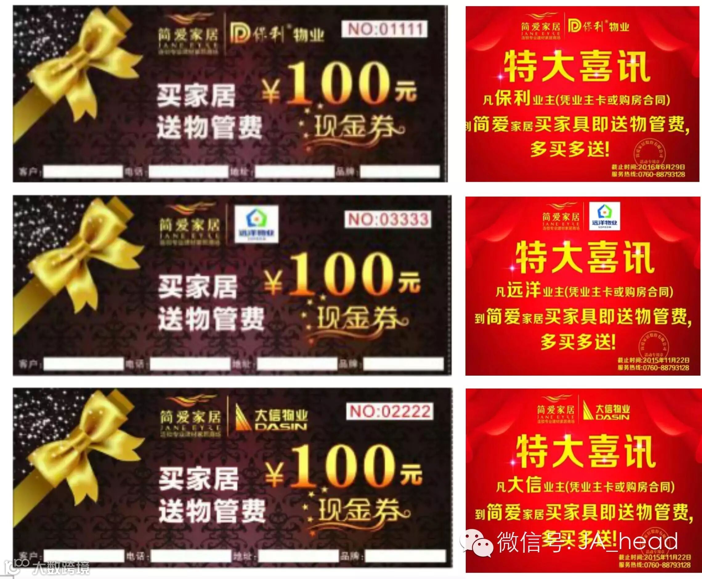 2015年11月22日,简爱家居中山区域与大信、保利、远洋物业深度合作,只要你在简爱购买家具就送物业管理费,服务在哪里?这就叫服务!真正给业主带来福利。