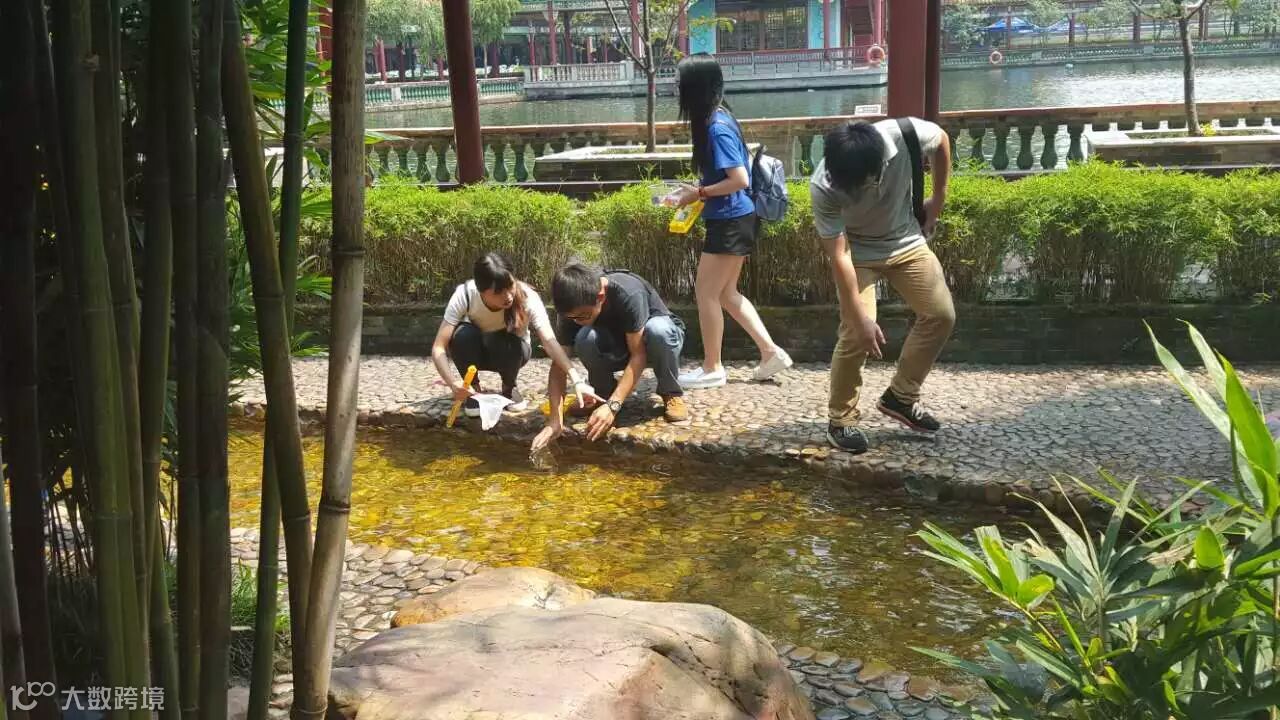 游园活动之一,捕鱼比赛!大人与小孩之间你捕我抓认真的寻找鱼的身影!
