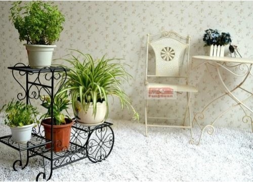 盆栽多的时候总是不能全部都排成排摆放在房间中,因为会占用到许多空间。但是如果摆放在阳台上,又不能时时见到,所以,使用这样一个铁艺创意花架,就可以将几盆盆栽同时收纳,放在客厅中与铁艺家具相呼应,显得很有美感。而且这样的花架移动起来也比较方便。