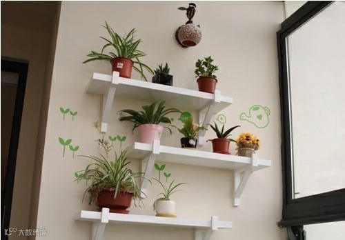 如果你不知道许多小盆栽该放在哪,如果你不知道墙壁留白该如何布置,不如就选择这样的创意花架吧。看似浑然天成如一幅风景画作,但是只要简单的固定一个白色的创意花架即可,然后分别将花盆放在对应的圆圈中。这样不但节省了大量的布置时间,也不会对墙壁造成过多的损坏。