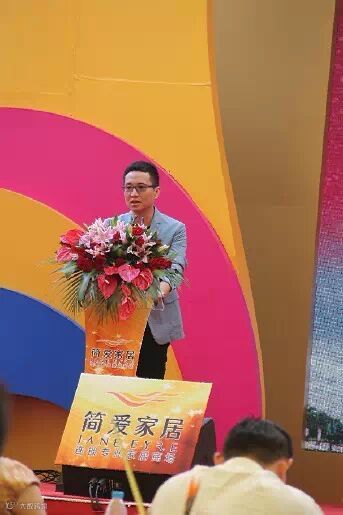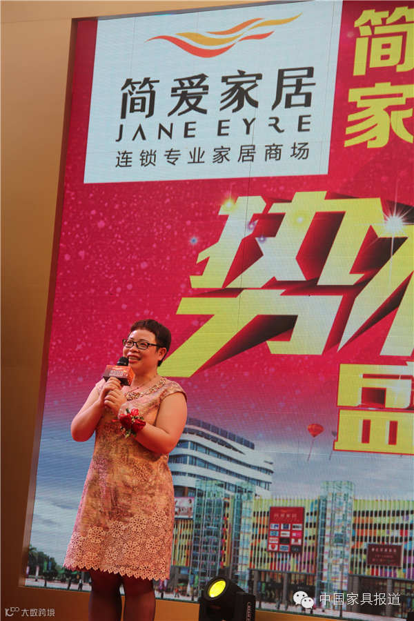 简爱家居创始人掌舵人罗辑俐女士,站在台上演讲感人肺腑,极具感染力与号召力