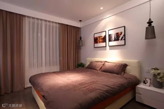 为了避免睡眠障碍的产生,设计师用棕色来协调卧室的氛围,与客厅森林气息的软式遥相呼应,将其心绪引领进一种清明的境地,有活力但不躁动,让人如沐春风,刚好在森林中做个安心的美梦。