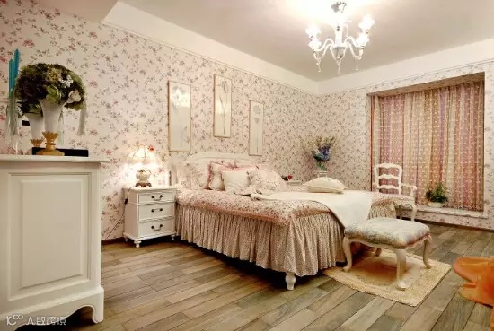 花仙子和睡美人都爱在花丛中酣睡一场,舒畅烂漫的笑容是内心荣盛的阳光,原木色地板不加掩饰的提升着整个空间的自然气息,花团锦簇中设计师依旧用白色来中和其中的繁盛。