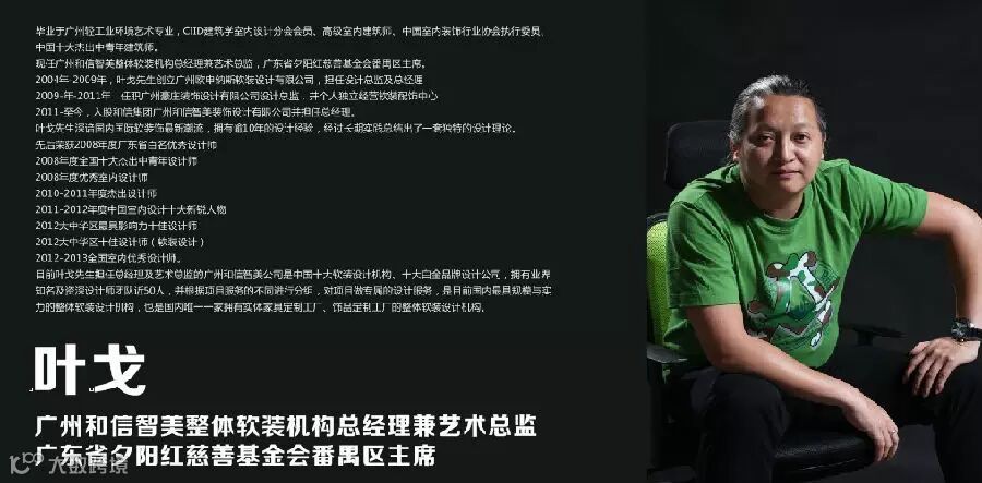 目前叶戈先生担任总经理及艺术总监的广州和信智美公司是中国十大软装设计机构、十大白金品牌设计公司,拥有业界知名及资深设计师团队近50人,并根据项目服务的不同进行分组,对项目做专属的设计服务,是目前国内最具规模与实力的整体软装设计机构,也是国内唯一一家拥有实体家具定制工厂、饰品定制工厂的整体软装设计机构。