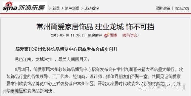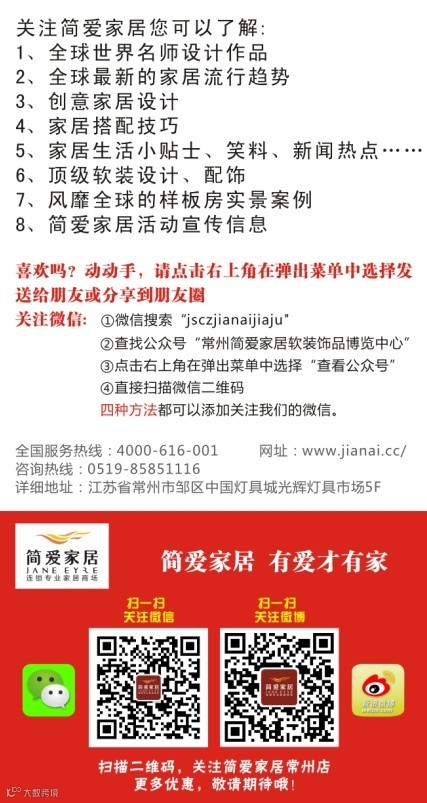 并推荐他们关注“简爱家居(常州)软装饰品博览中心”微信公众平台