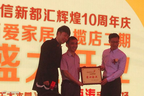简爱家居副总裁叶亿先生接受创益菊城的黄思通主任颁发的荣誉证书