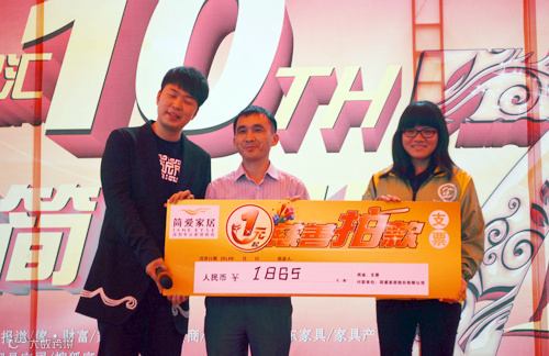 简爱家居一元爱心拍卖,简爱家居副总裁叶亿先生向中山蓝天家园秘书洪慧敏女士捐赠拍卖善款