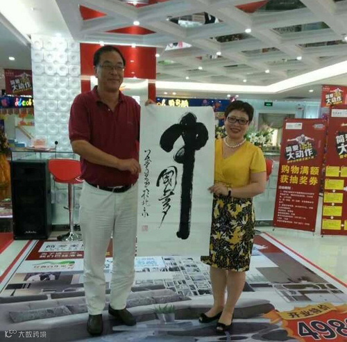 深圳市粤信创意文化有限公司总经理助理叶自力先生赠与简爱家居执行董事罗辑俐女士字画。