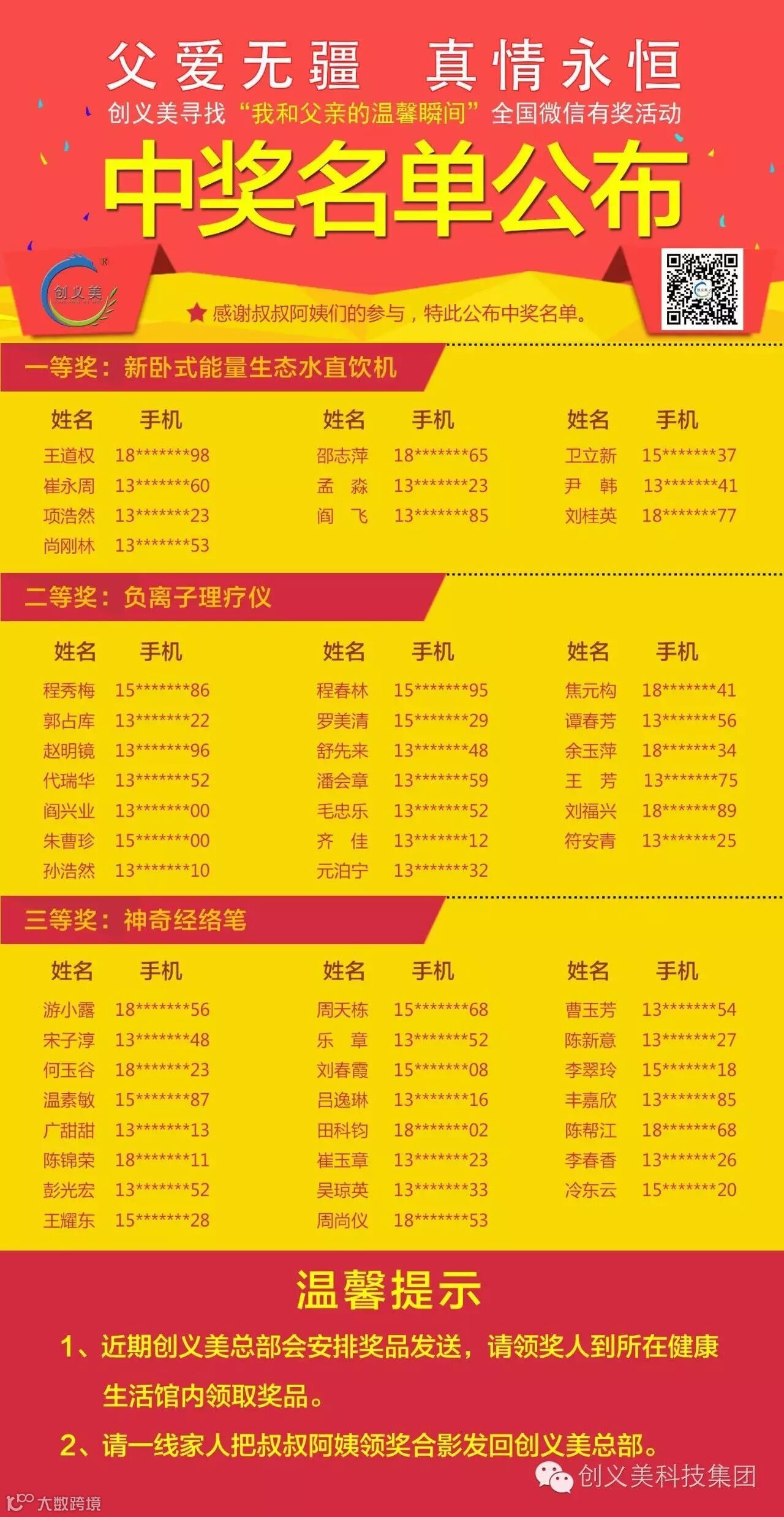 父爱无疆、真情永恒——创义美寻找“我和父亲的温馨瞬间”全国主题活动中奖名单公布