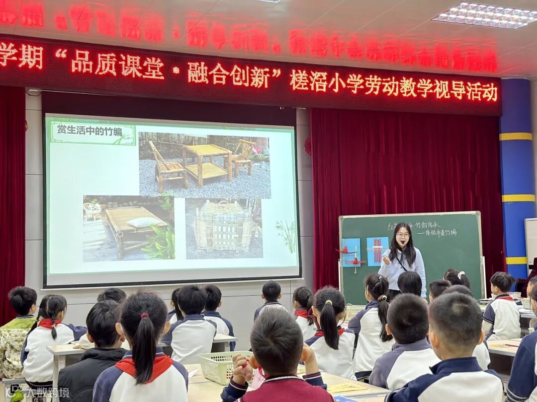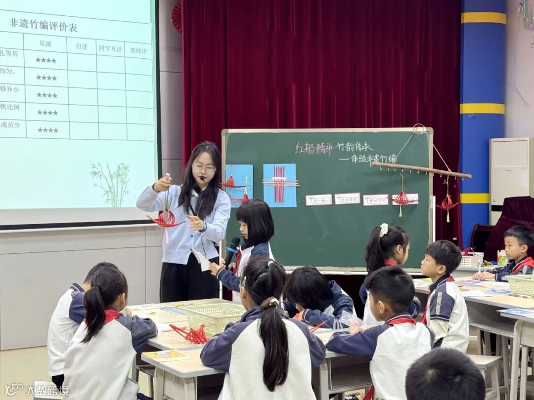 三年级彭加惠老师带来的《红船精神・竹韵传承—体验非遗竹编》劳动课,以精巧设计让传统与红色基因深度交融。