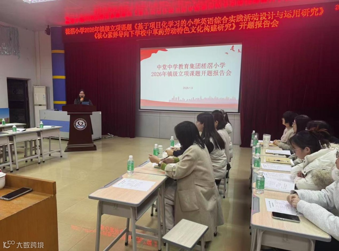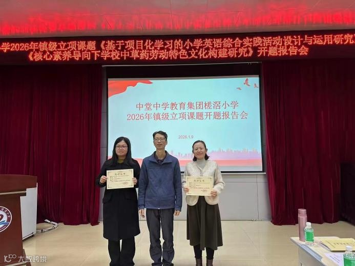随后,进入立项证书颁发环节。郭鲲鹏老师代表评审组,为《基于项目化学习的小学英语综合实践活动设计与运用研究》《核心素养导向下学校中草药劳动特色文化构建研究》两项镇级立项课题的研究团队郑重颁发立项证书,标志着这两项课题正式迈入系统化研究与实施阶段。