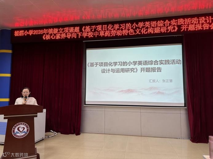 在开题报告环节,两项课题负责人依次登台,进行全面深入的汇报。首先,英语课题组负责人张正慧老师围绕《基于项目化学习的小学英语综合实践活动设计与运用研究》,从研究背景、目标内容、方法路径及预期成果等维度展开系统阐述。该课题立足新课标与核心素养培育要求,直面当前英语教学中“重知识轻实践、重输入轻输出”的突出问题,以项目化学习(PBL)为核心载体,致力于构建“设计—实施—评价—展示”一体化的英语综合实践活动体系。