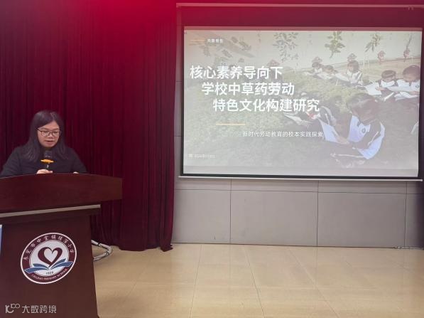随后,霍细琴老师代表劳动课题组,就《核心素养导向下学校中草药劳动特色文化构建研究》作开题报告。报告围绕“研究背景与现状”“核心概念与研究目标”“研究内容与方法”“研究思路与进度”“组织实施与预期成果”五个关键方面,进行了条理清晰的阐述。该课题响应“五育并举”政策号召,针对劳动教育边缘化、核心素养培养书本化等痛点,以中草药文化为精神纽带,深度融合医药价值、文化价值与教育价值,构建“课程+实践+文化+评价”四位一体的特色育人体系。