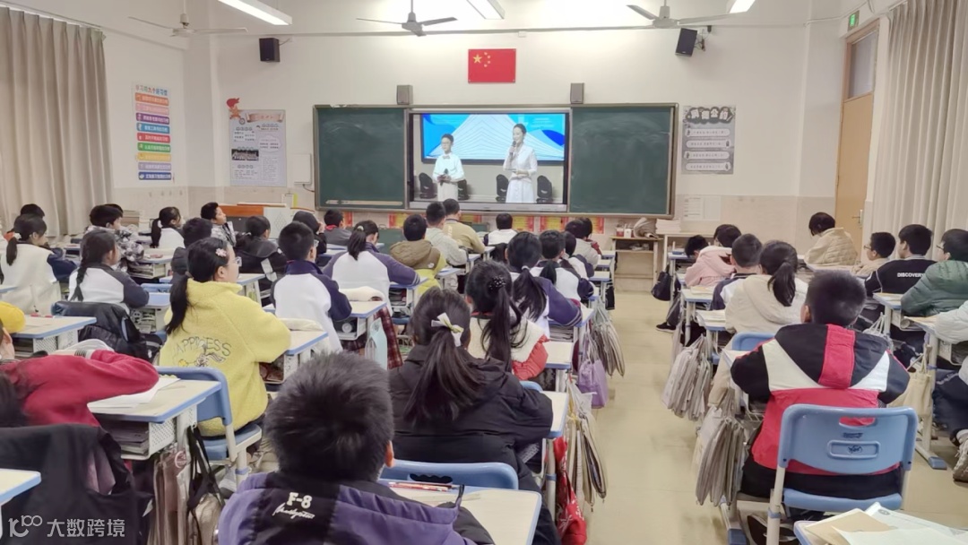 各班学生在教室观看直播
