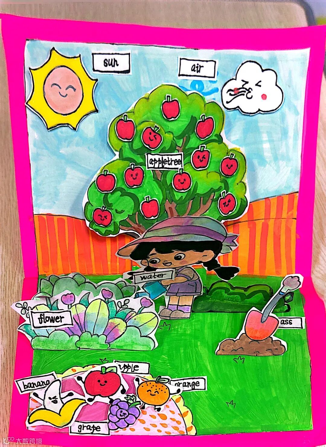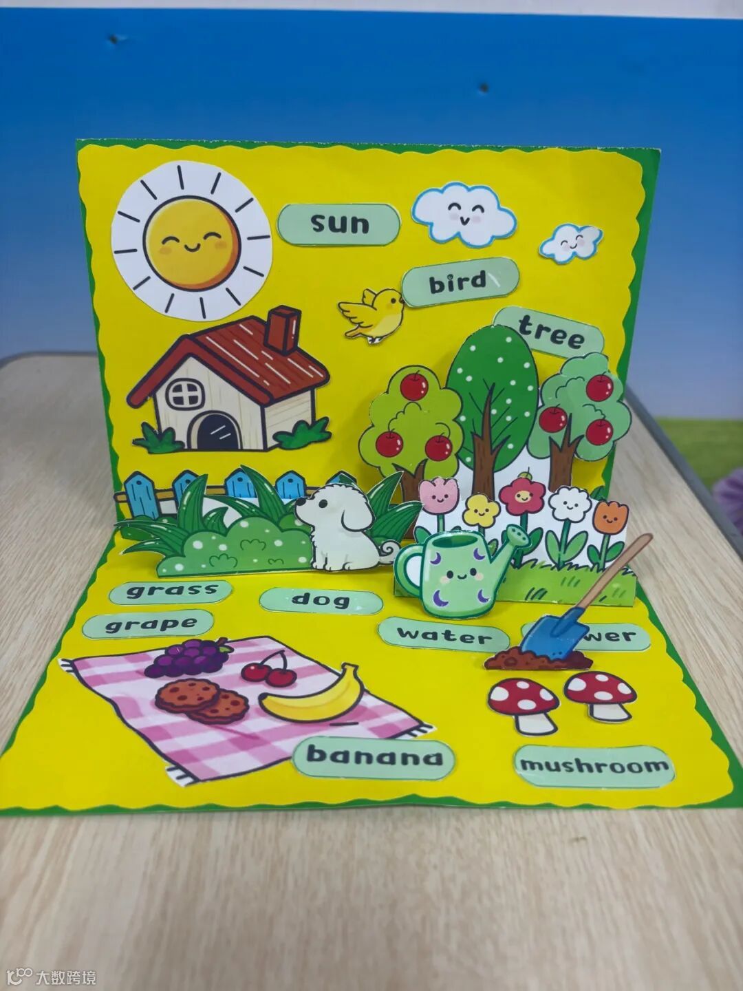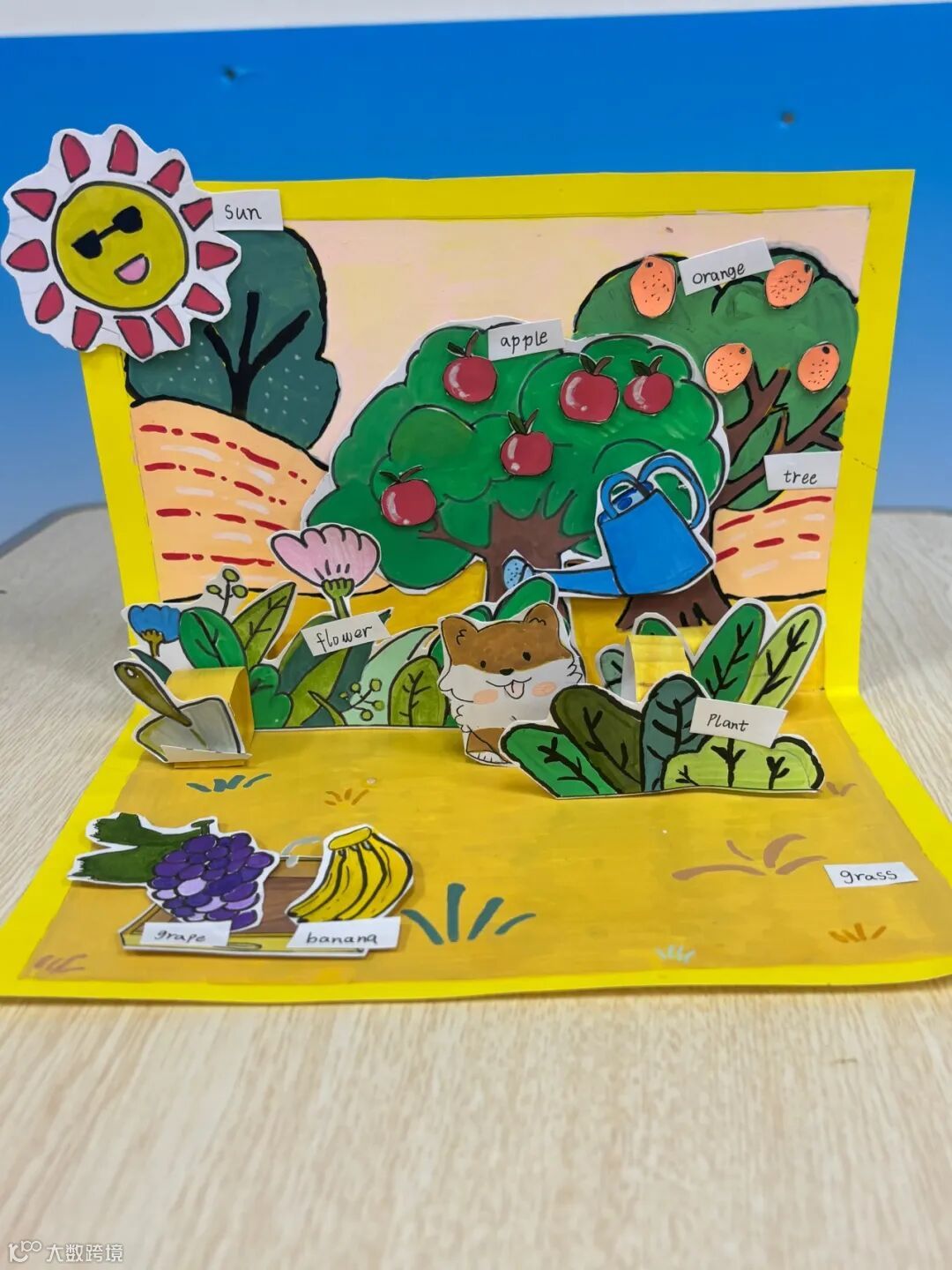 三年级英语立体书纸花园是指尖绽放的惊喜,孩子们以纸张为媒介,裁剪、折叠、涂色,从作品创作中积累基础单词,立体的生动造型里藏着对英语词汇的细致感知和审美巧思。