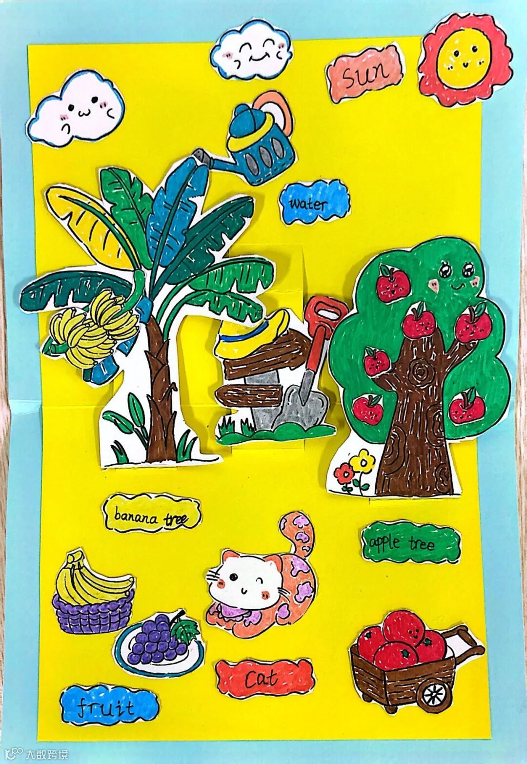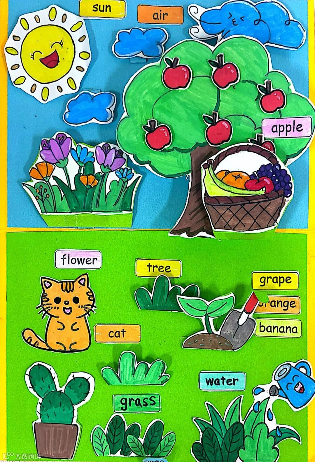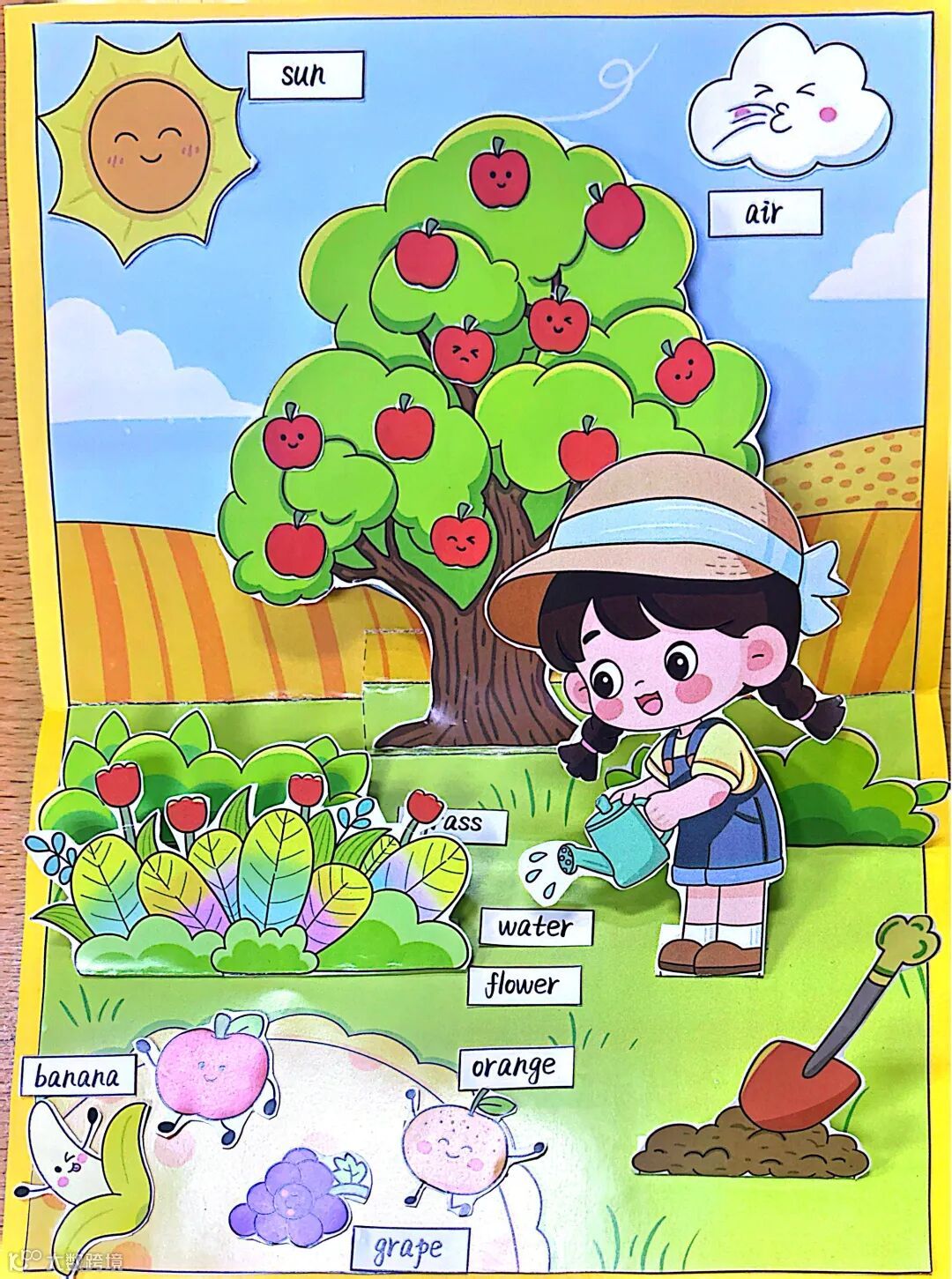 三年级英语立体书纸花园是指尖绽放的惊喜,孩子们以纸张为媒介,裁剪、折叠、涂色,从作品创作中积累基础单词,立体的生动造型里藏着对英语词汇的细致感知和审美巧思。