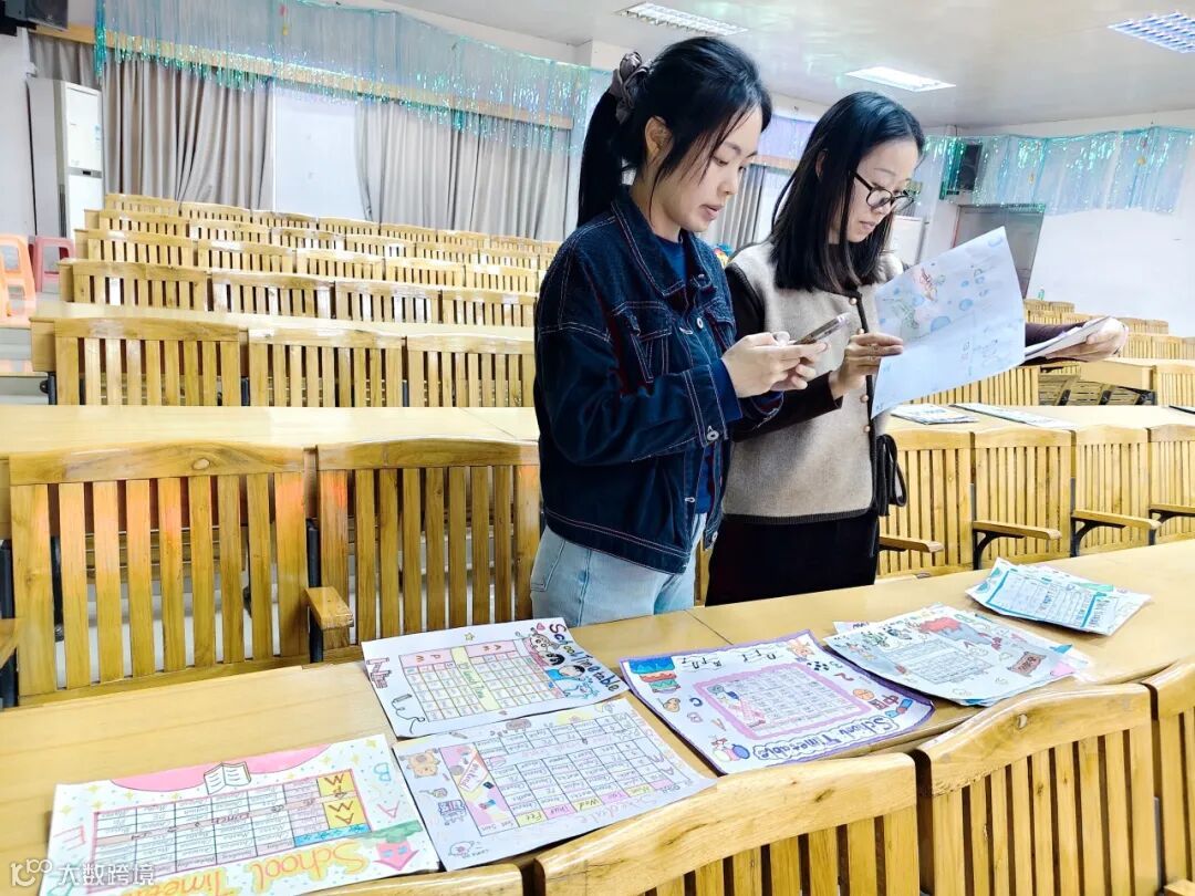 评审现场,老师们围绕英语表达准确性、创意设计独特性、版面美观度、内容完整性四大维度,对每份作品逐一打分、细致研讨。从英文拼写的细微之处,到创意构思的巧思亮点,评委们认真记录、热烈讨论,确保每一份优秀创作都能被看见。