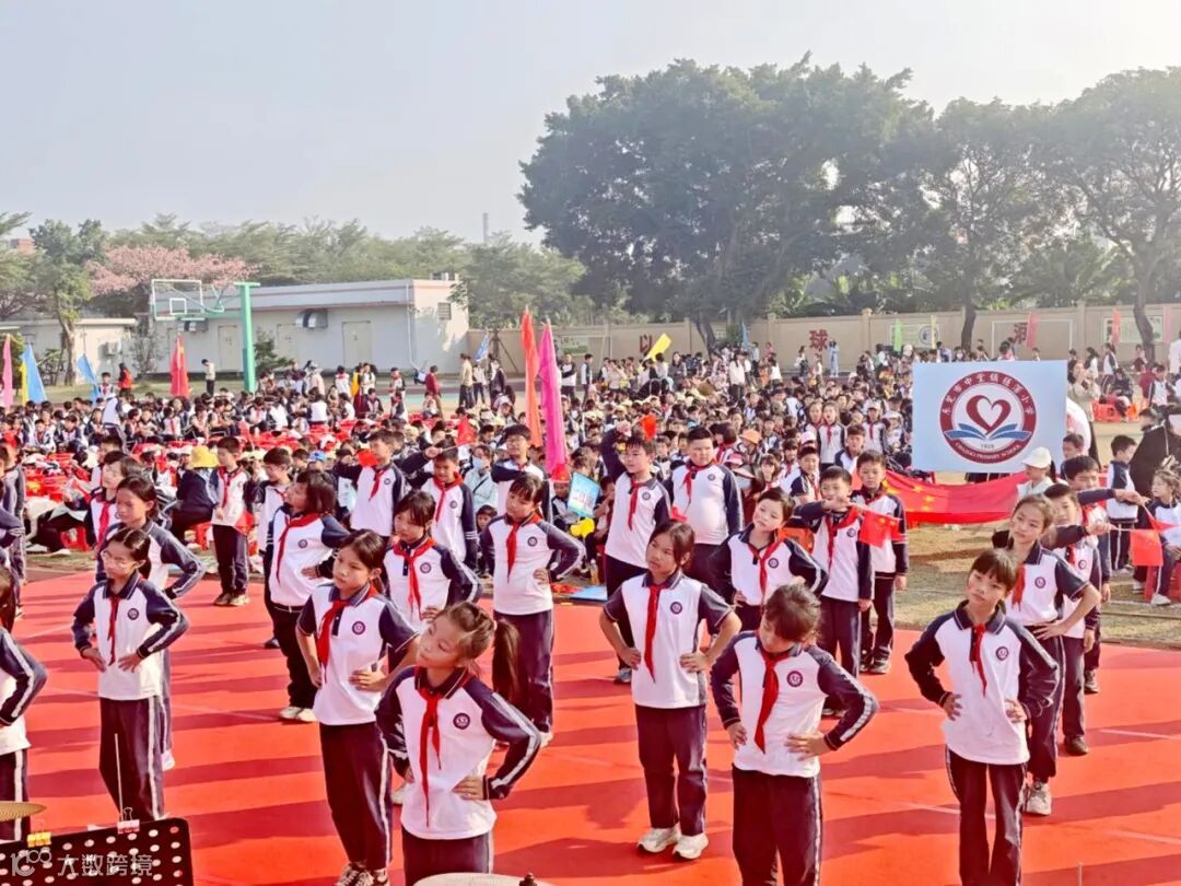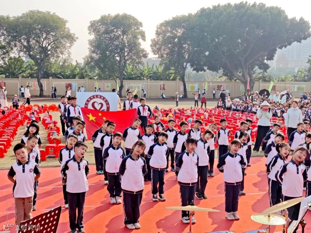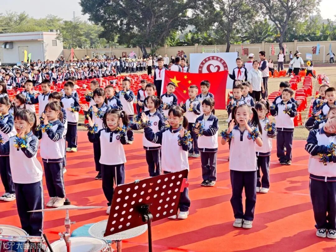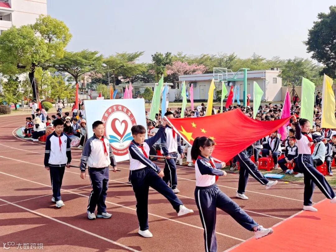 校徽队:紧随国旗队的校徽队队员,身着整洁校服,双手托举着象征学校精神的校徽。校徽熠熠生辉,凝聚着槎滘小学的办学理念与文化底蕴,他们的步伐沉稳有力,展现着对学校的热爱与敬意。