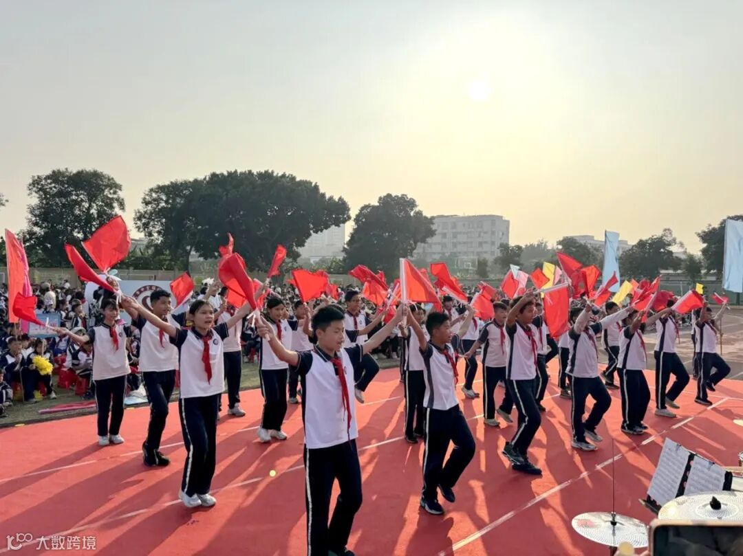 当杨金华校长郑重宣布:“中堂中学(集团)槎滘小学第二十六届体育艺术节正式开幕!”现场瞬间沸腾,掌声、欢呼声、呐喊声此起彼伏,彩旗挥舞。紧接着,全校师生共同传唱歌曲《气势如虹》,歌声中满是团结奋进的力量,满是对体育艺术节的热切期待,将现场氛围再次推向高潮。