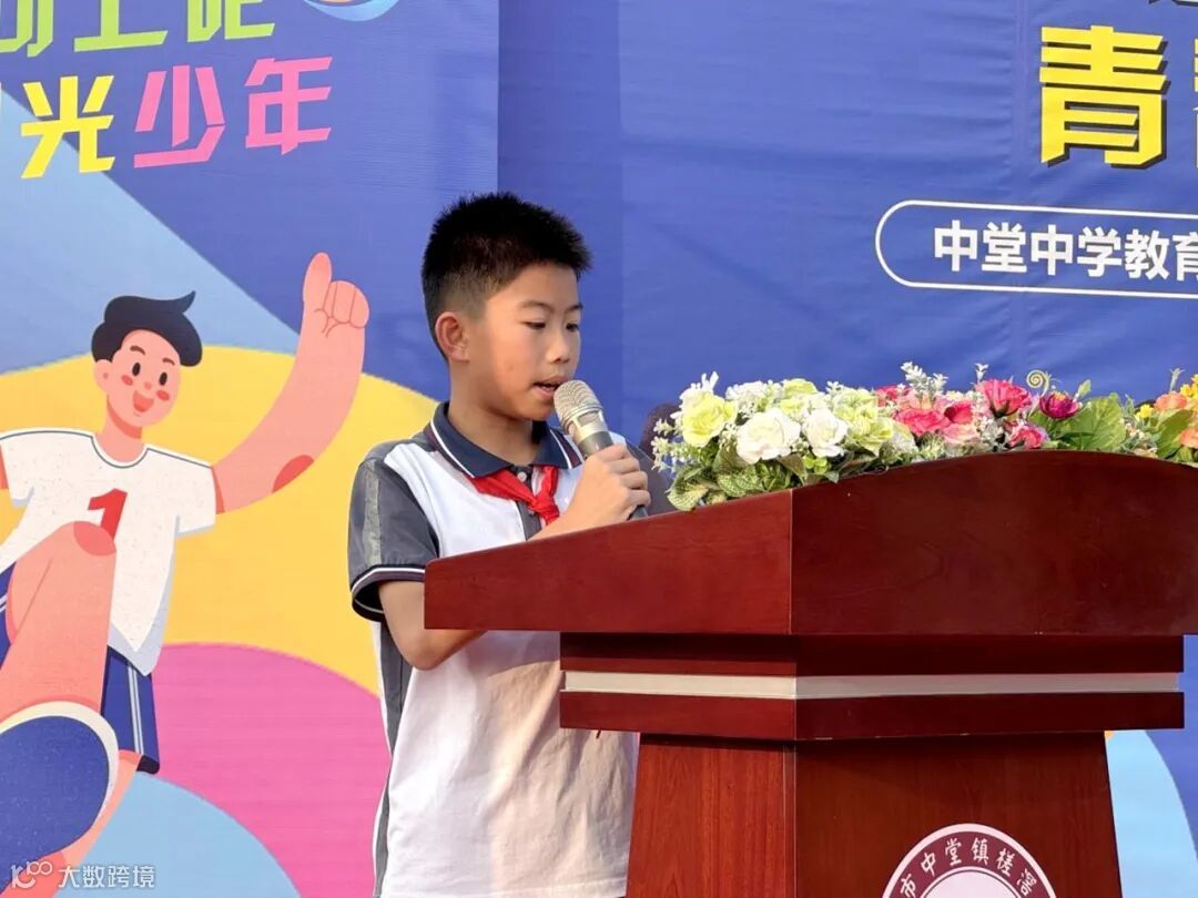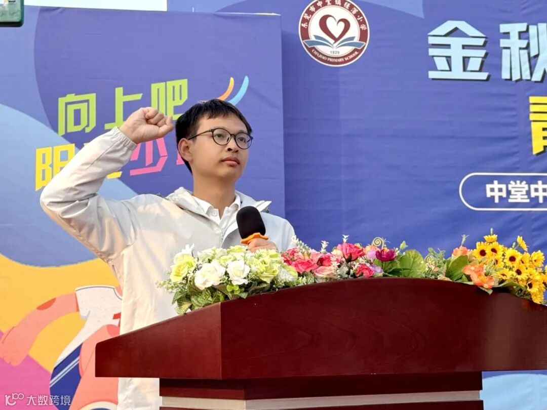 接下来,运动员代表六(4)班申奕谦同学身着运动服,精神抖擞地走上主席台,举起右拳庄严宣誓,充分展现了运动员们的拼搏决心与体育精神。