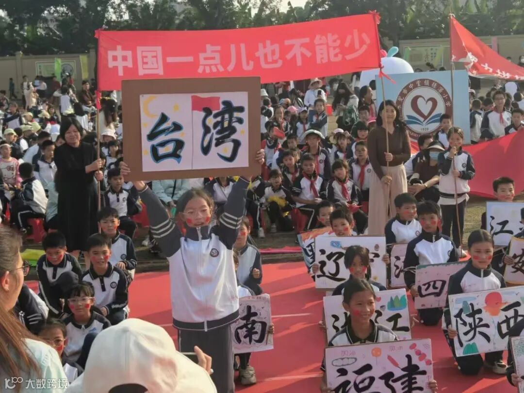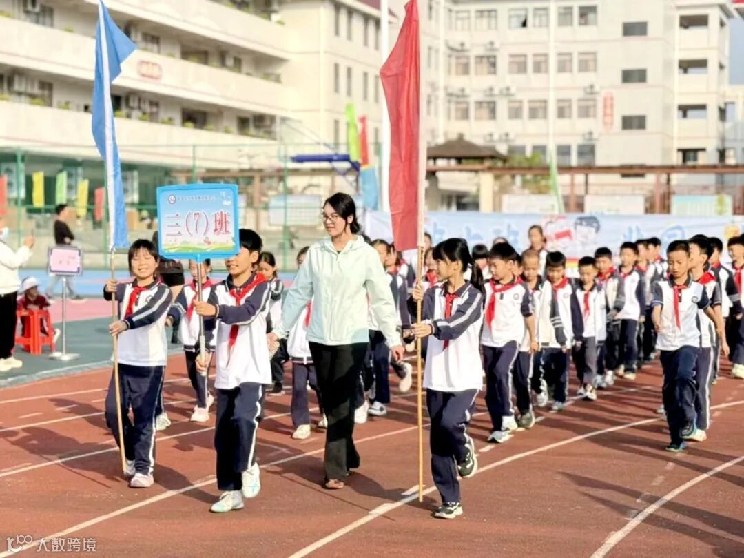 三年级方阵以创意队形亮相,搭配嘹亮的班级口号,展现出独特的班级凝聚力。