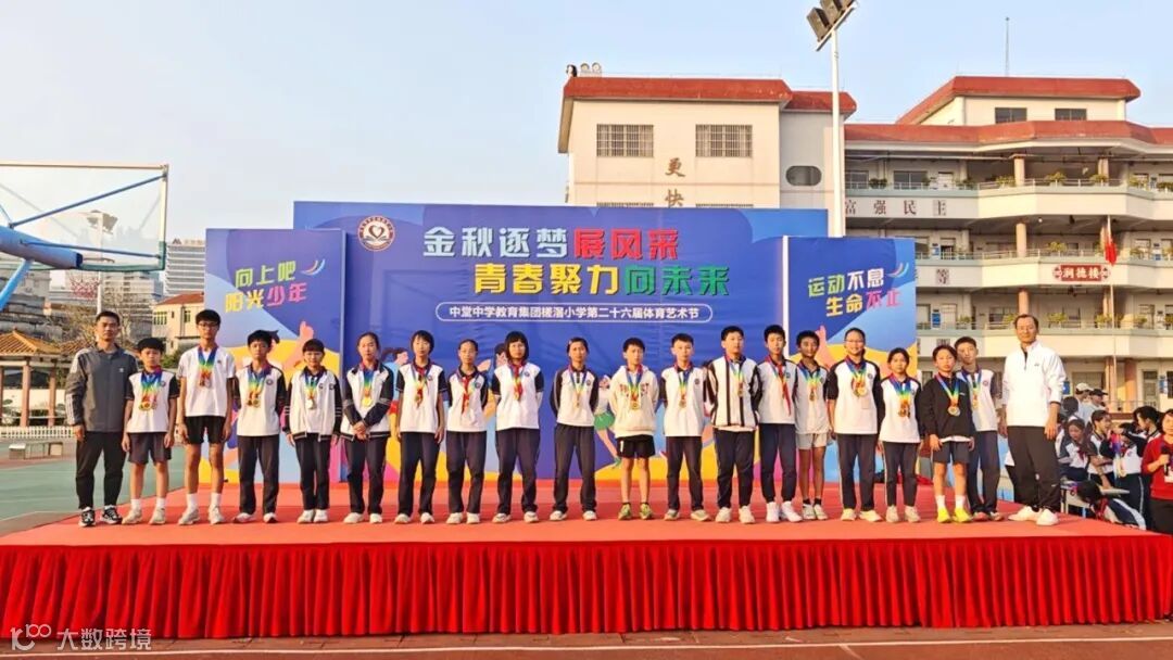 运动会进入尾声,获奖同学与领导们合影留念。奖牌的光芒、灿烂的笑容、热烈的掌声,交织成校园里最温暖的画面,也让体育精神与拼搏意识在每一位学子心中深深扎根。