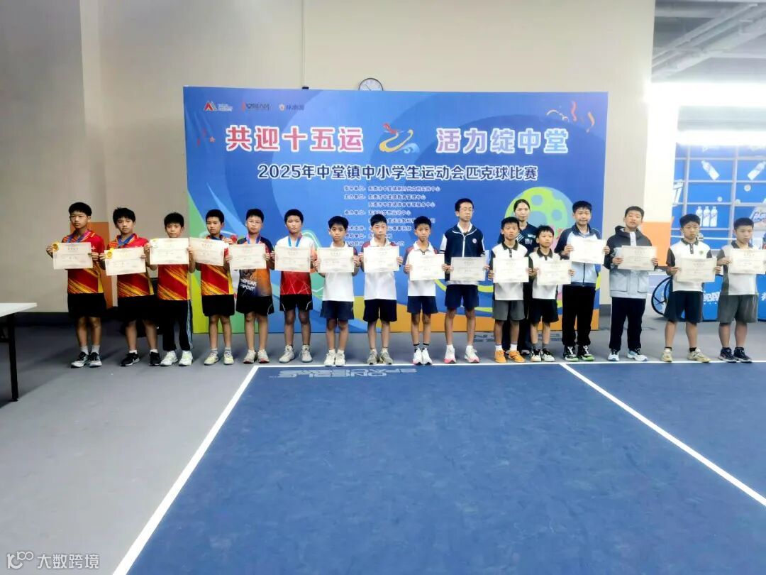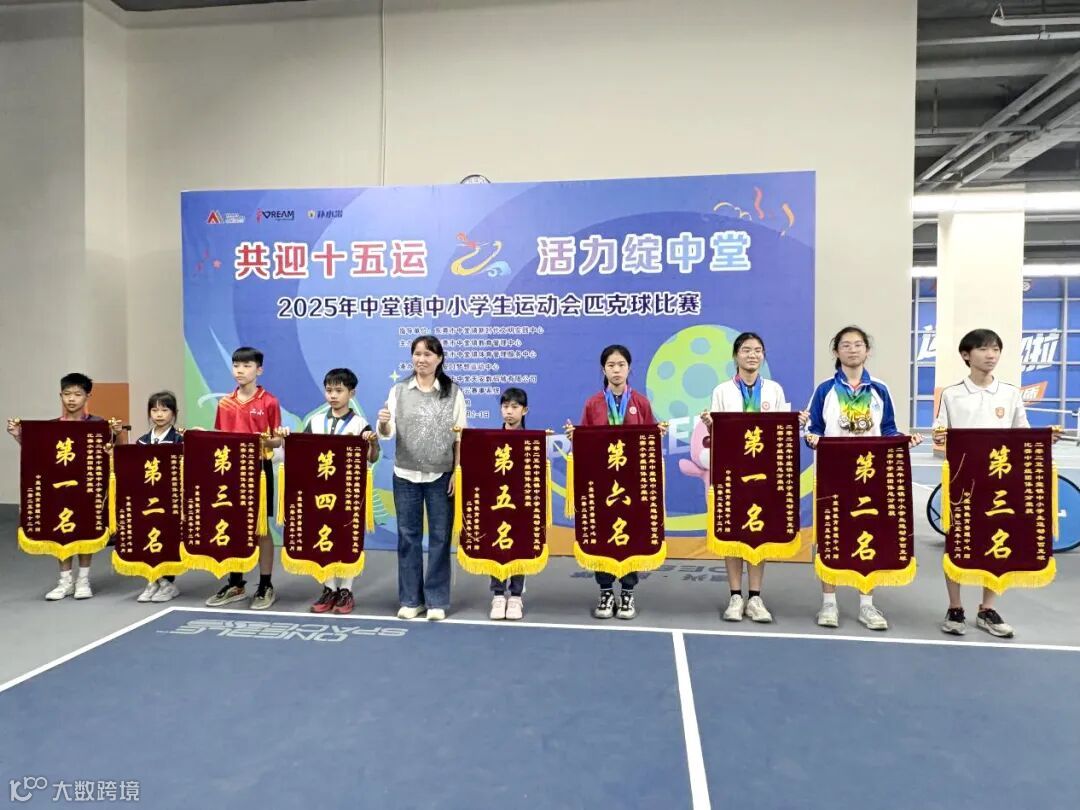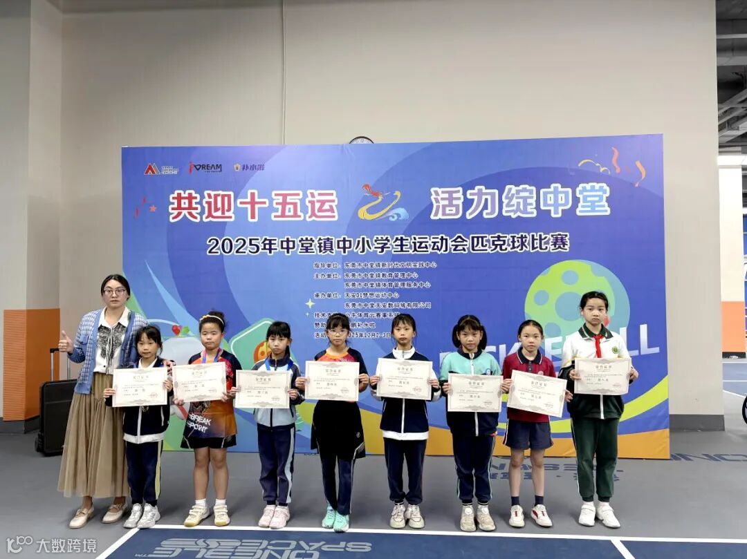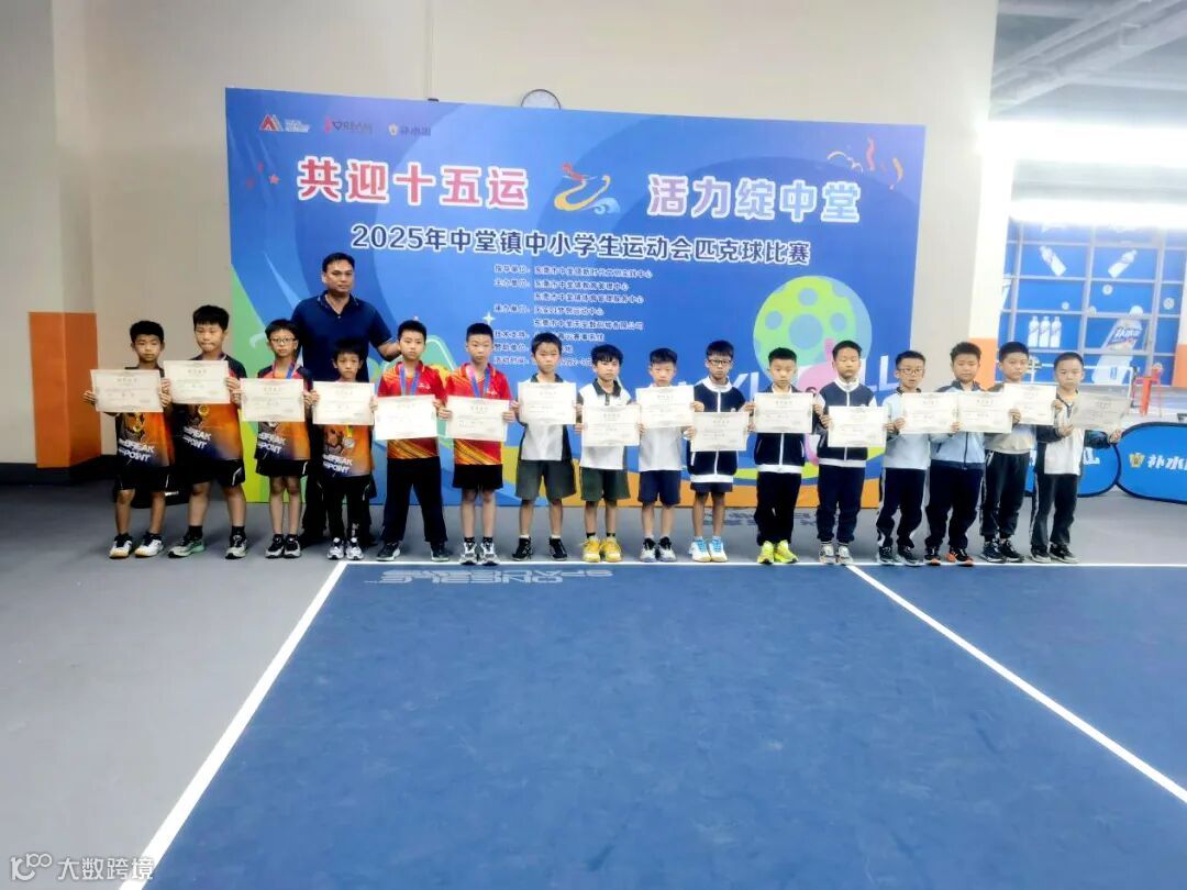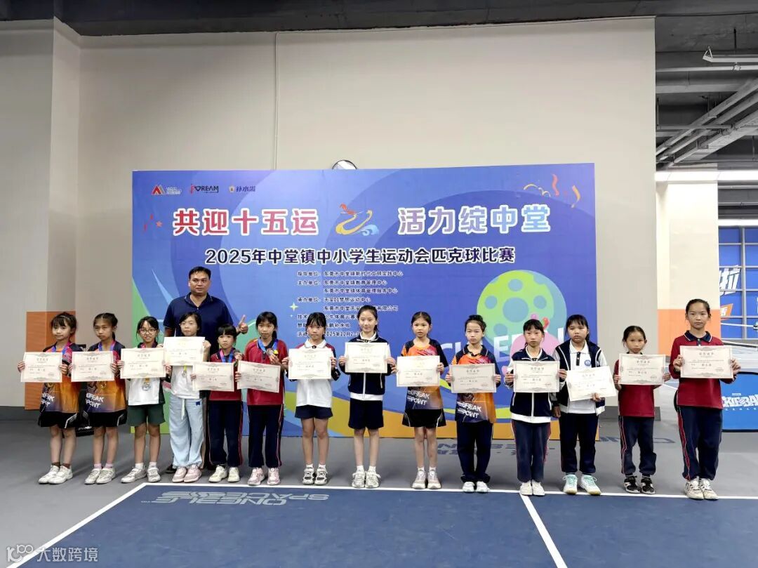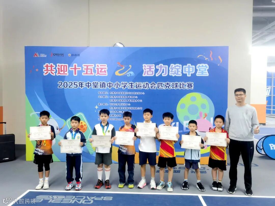 在刚刚落幕的2025年东莞市中堂镇中小学运动会匹克球比赛中,我校匹克球队不负众望,在全镇8支参赛队伍的激烈角逐中脱颖而出,一举斩获团体总分第一名,并在甲、乙两组多个单项赛事中跻身前三名。充分展现了槎小学子奋勇争先、蓬勃向上的精神风貌。