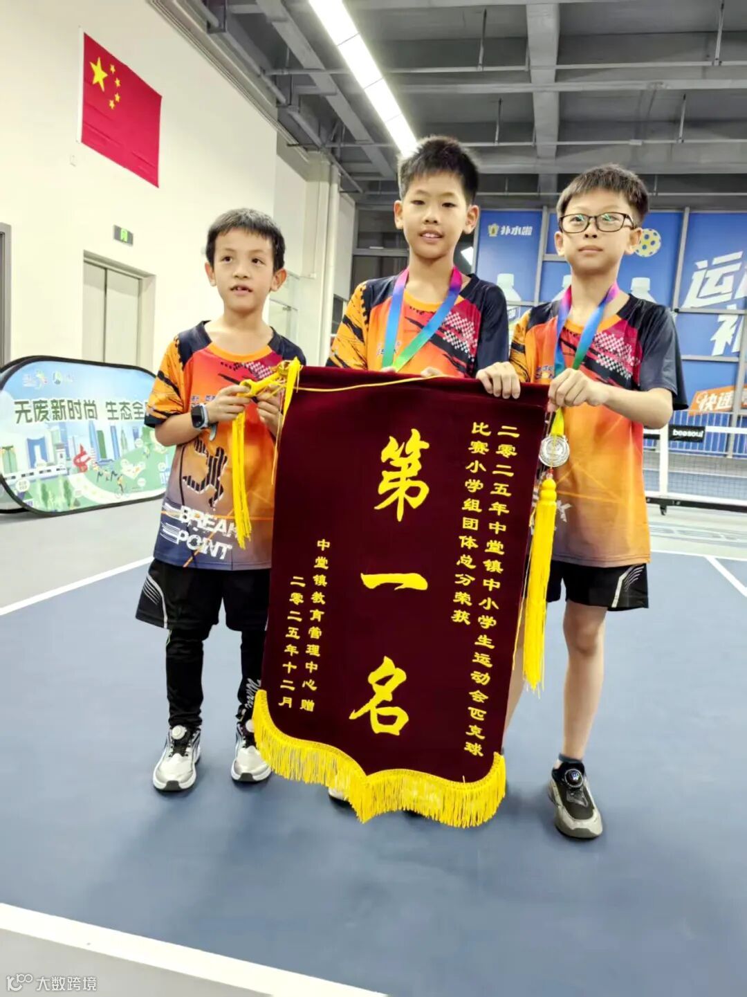 经过三个月老师和学生的共同努力,我们最终在中堂镇中小学运动会匹克球比赛中,斩获小学组团体总分第一名。