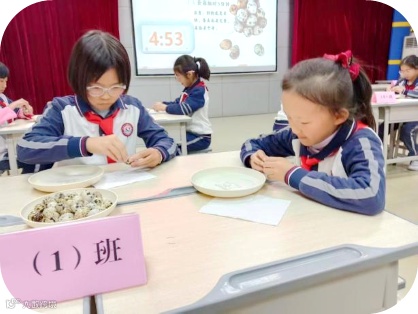 三年级的赛场飘起了淡淡的蒜香。孩子们细心剥开蒜皮,比拼速度,更考验耐心。一颗颗光洁的蒜瓣,是他们细致与专注的最佳证明。