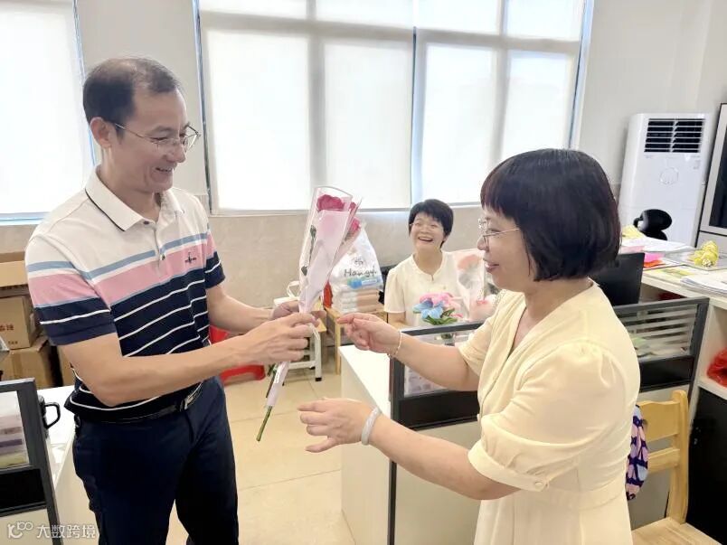 清晨的校园里,一缕缕阳光照耀着校园,给校园增添了一丝丝温暖。教育管理中心郭贺祥副主任、杨金华校长、黎勇副书记带领行政团队早早等候在各教师办公室,为每一位到校的老师递上一朵朵娇艳的鲜花。一句“老师,您辛苦了!”,一个温暖的微笑,让这份来自学校的关怀瞬间驱散了工作的疲惫,开启老师们充满幸福感的一天。