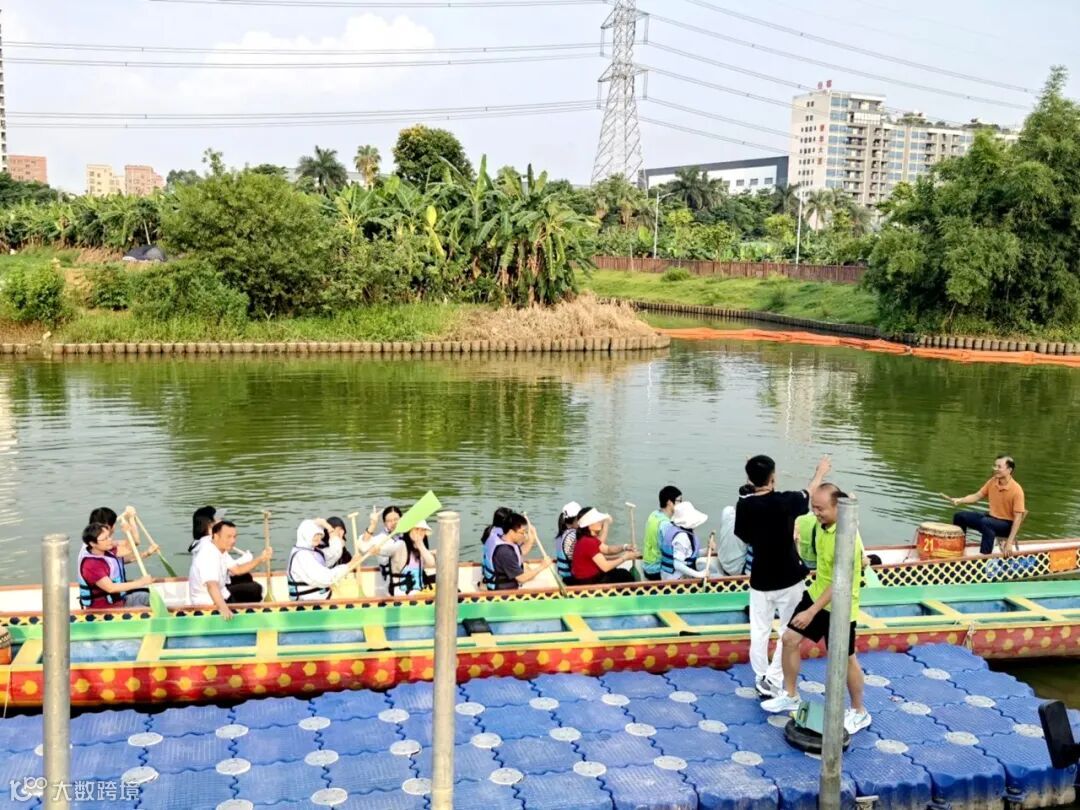 为传承和弘扬中华民族传统文化,感悟“赛龙舟”锐意进取的拼搏精神,增强团队凝聚力,提升全体教职工的团队协作精神,帮助教职工释放压力,2025年7月4日下午,我校工会组织教职工到中堂镇槎滘村龙舟训练基地开展了“竞渡龙舟承文脉,凝心聚力展师风”龙舟友谊赛。