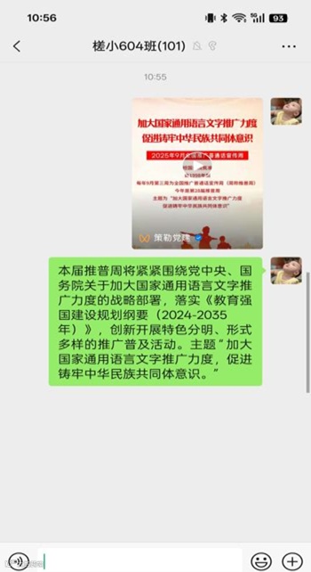 为使“加大国家通用语言文字推广力度,促进铸牢中华民族共同体意识。”主题更加深入人心,落实在师生的行动上,我校积极宣传,让教师、学生、家长树立语言规范意识,提高民族文化素质,推动社会推普工作的进程。
