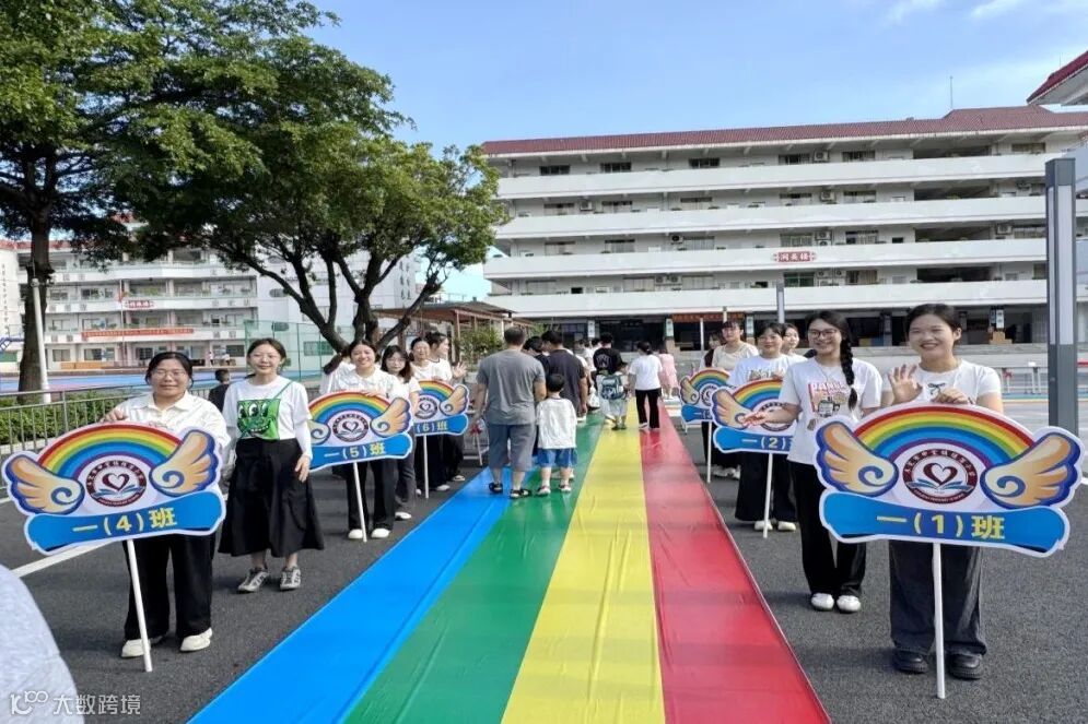 清晨的校园格外热闹,学校全体行政领导和一年级老师们早已守候在校门两侧。他们身着整洁的白色上衣,面带温暖笑容,用最灿烂的笑脸和最真诚的目光迎接每一个稚嫩的身影。