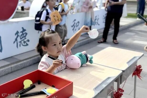 随后,亲子共同跨越祝福栏,触摸寓意吉祥的物品,在拍照墙前定格幸福的笑容。亲子共同制作的名字牌,贴在愿望树上的心愿卡,无不诉说着孩子们对未来的美好期待。稚嫩的笔迹,犹如播撒在心灵沃土上的种子,静待花开。