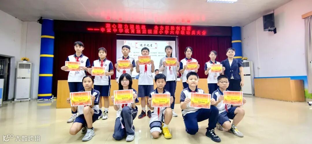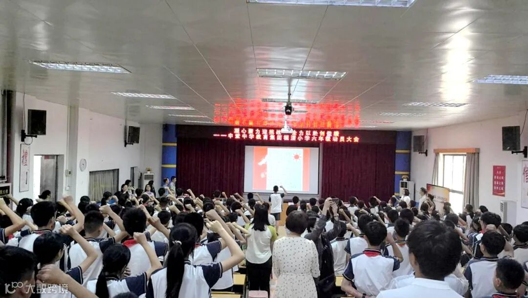 接下来,全体师生共同观看了各班主任精心制作的励志视频。视频记录了孩子们六年来从稚嫩到成熟的蜕变历程,一个个熟悉的身影、一幕幕感人的画面,让在场师生热泪盈眶。这段温暖的"时光之旅",不仅唤起了同学们的美好回忆和对母校、老师、同学的依依惜别之情,更激发了他们为母校争光的决心。