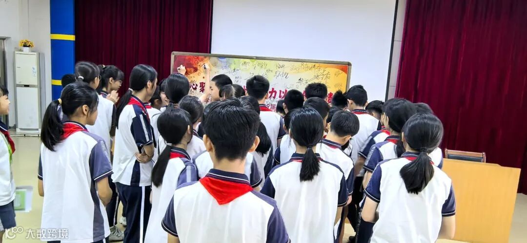 校领导,六年级全体师生依次签名,每一个笔迹都凝聚着坚定的决心,它们将化作一股无形的动力,时刻激励着同学们奋勇前行。