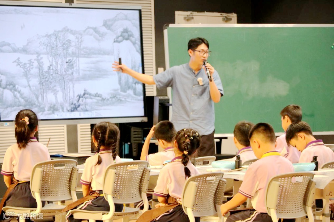林老师结合植物为引,带领学生体察作品中点的美感,聚焦于点的认知与表现,通过修复游戏带学生进行艺术创作,衔接单元目标,深化水墨之美的艺术表达。