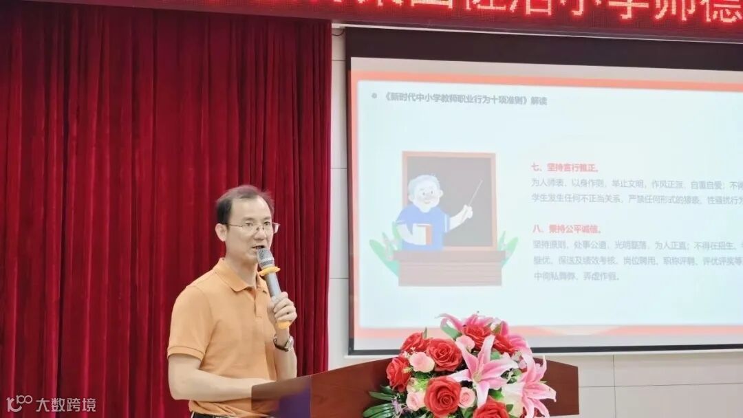 紧接着,杨金华校长以“警钟长鸣正师德 潜心育人铸师魂”为题,为教职工们开展师德师风警示教育讲座。讲座中,杨金华校长强调:“师德是教师的灵魂,是教育的生命线。全体教师要牢记‘为党育人、为国育才’的使命,以高尚师德、扎实学识、仁爱之心培育时代新人。”他结合当前教育形势和实际案例,给全体教师提出具体要求,号召教师以德立身、以德施教、以德育德,争做新时代“四有”好老师,当育人大先生。