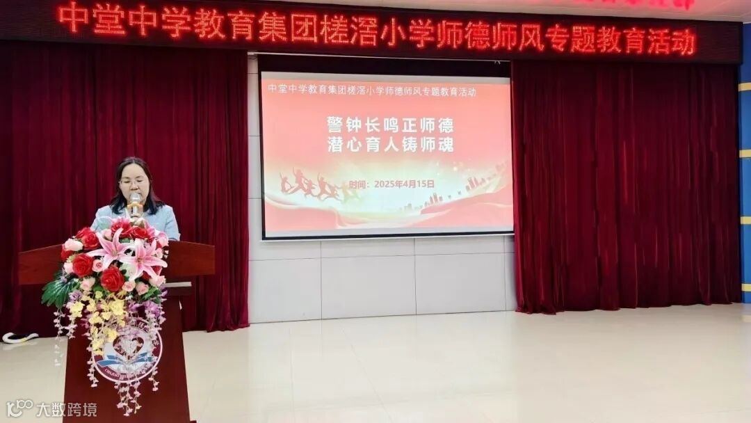2025年4月15日下午,中堂中学教育集团槎滘小学开展了以“警钟长鸣正师德 潜心育人铸师魂”为主题的师德师风专题教育活动。此次活动旨在进一步引导全体教职员工深刻理解并积极践行新时代下的师德师风要求,努力成为有理想信念、有道德情操、有扎实学识、有仁爱之心的四有好老师。活动由德育处伍慧婵主任主持,全体教师参加。