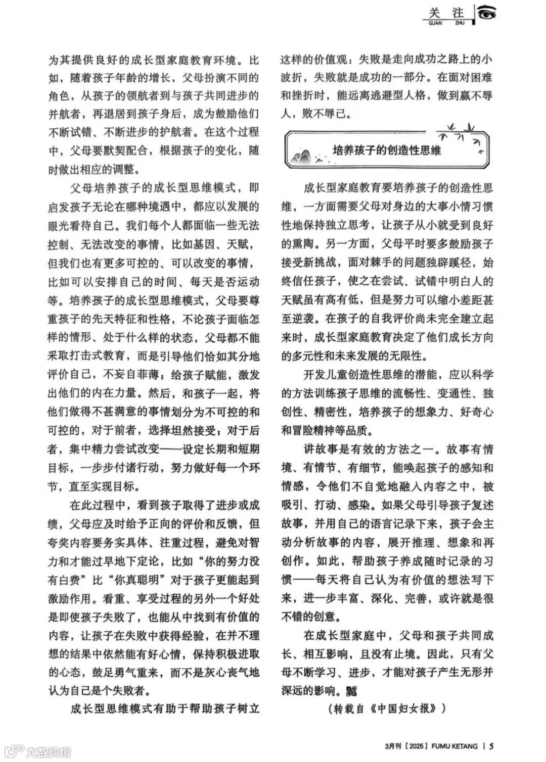 文章:《成长型家庭教育是孩子成长的催化剂》