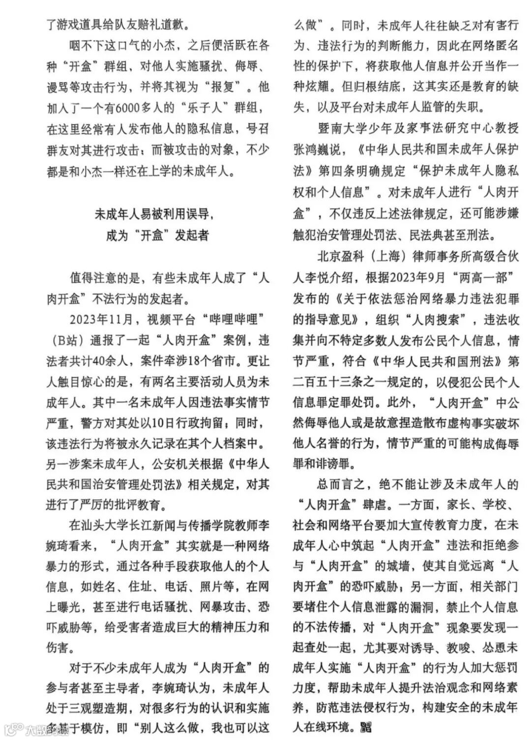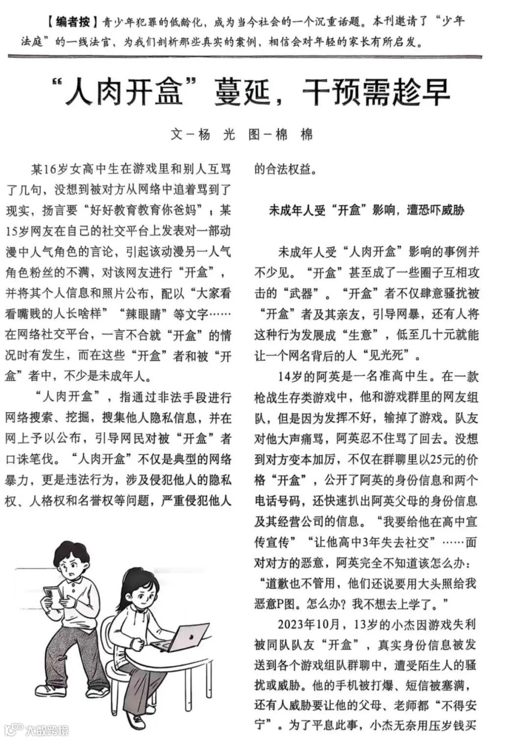文章:《“人肉开盒”蔓延,干预需趁早》