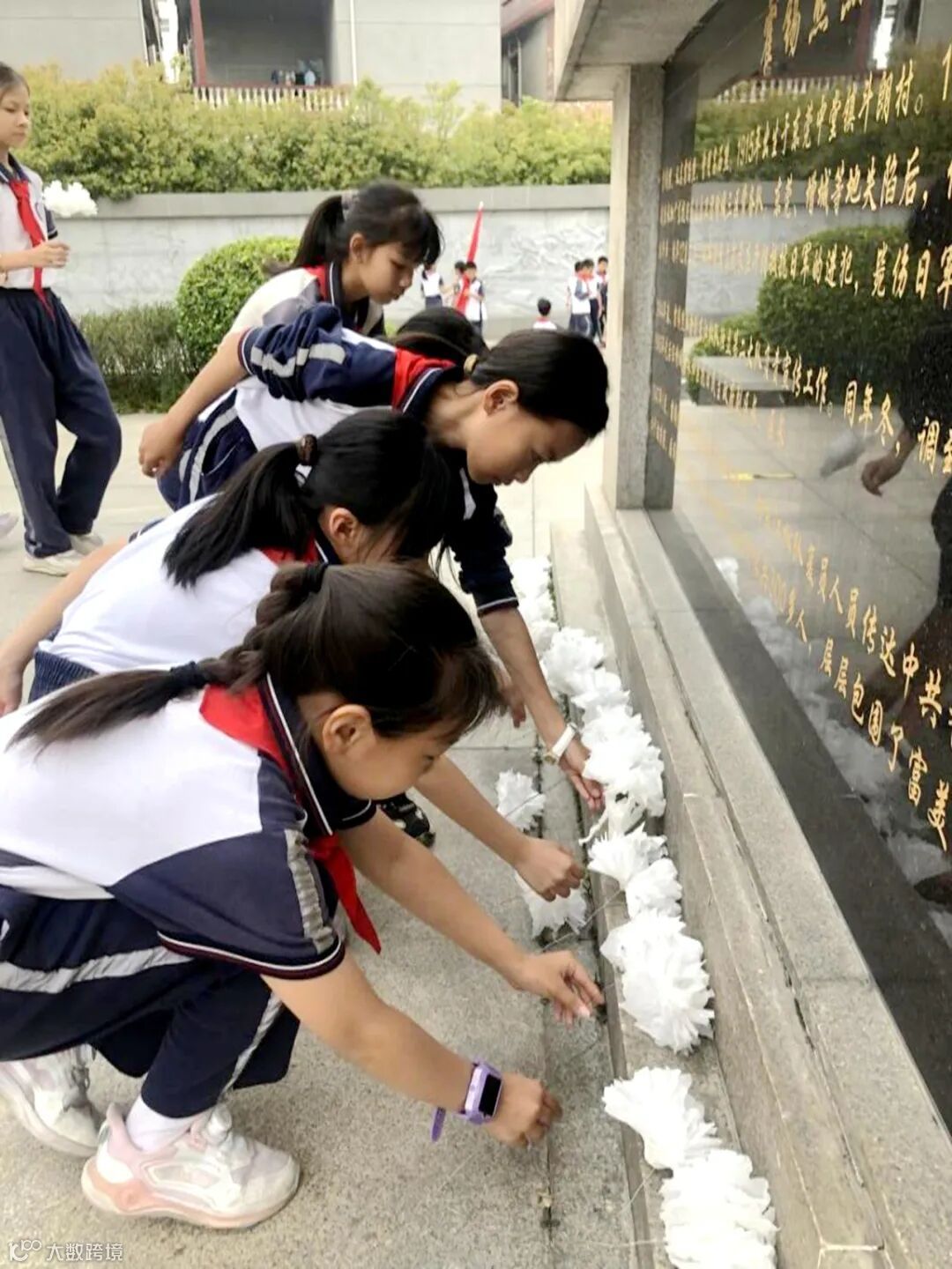祭扫活动结束后,队员们在红领巾讲解员的带领下参观烈士纪念广场。通过讲述烈士在抗日战争中英勇斗争、壮烈牺牲的故事,队员们深刻感受到革命先辈“抛头颅、洒热血”的壮志豪情。